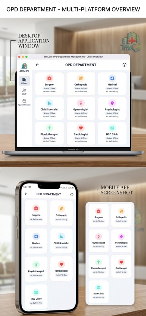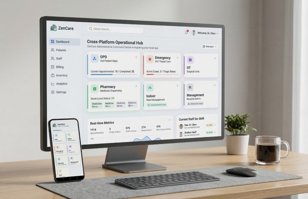 "A complete digital workflow system integrating OPD, Emergency, Indoor wards, and Pharmacy. It enables staff to manage patients from registration to treatment and admission within a single unified platform."