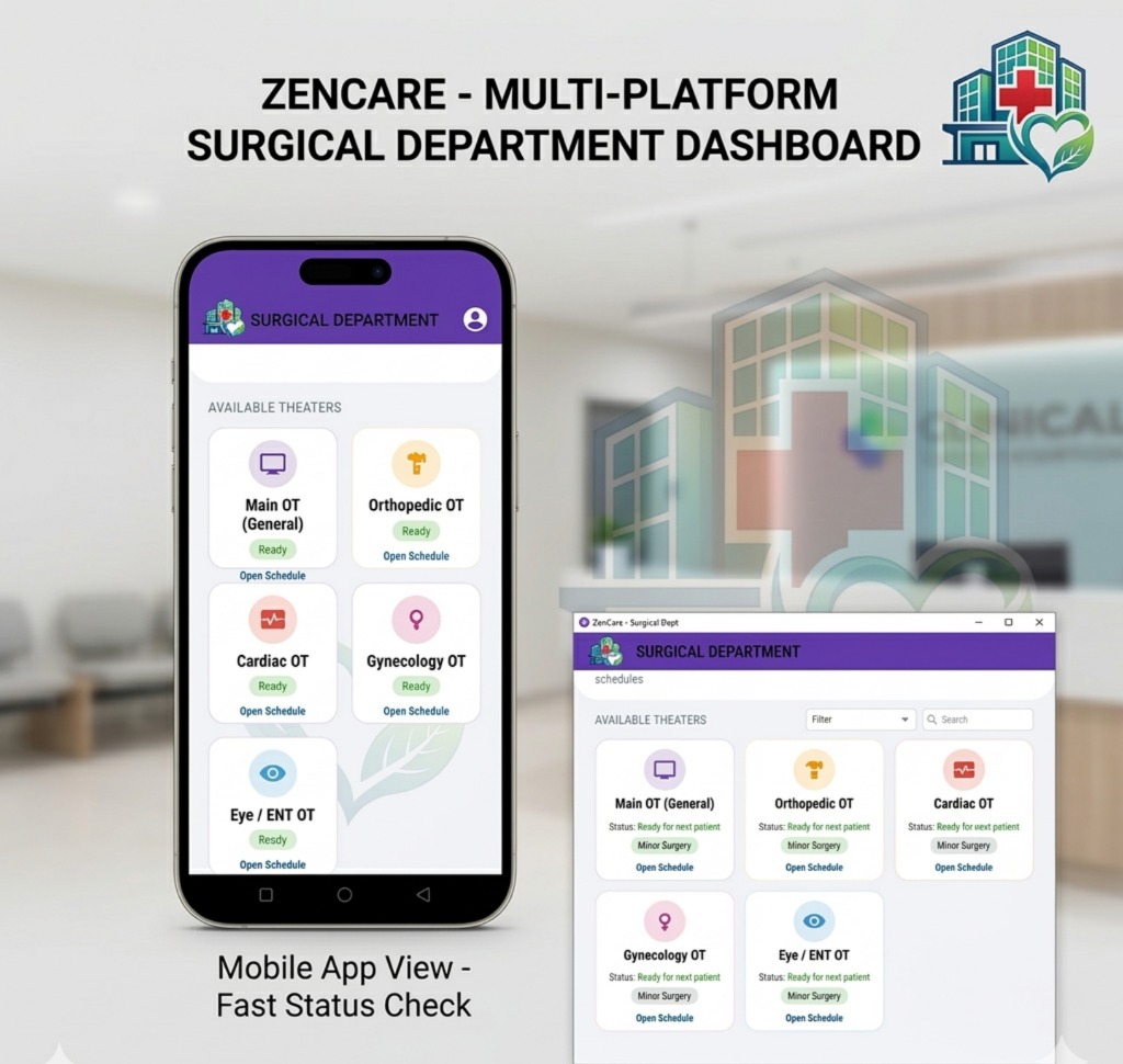 Status tracking for Operation Theatres and surgical scheduling across the facility.
